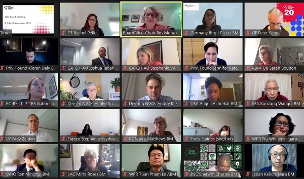 En la primera jornada de la Reunión de la Junta de Gobierno del Fondo Mundial, la doctora Mirta Roses toma la palabra como representante de la Delegación LAC. En su alocución felicita el trabajo del Director Ejecutivo e hizo un llamado a usar las lecciones aprendidas sobre la agilidad y flexibilidad del Mecanismo de Respuesta al Covid-19 (C19RM, por sus siglas en inglés); asimismo valora los esfuerzos por fortalecer la comunicación y brinda su apoyo a la Narrativa del Marco Estratégico.